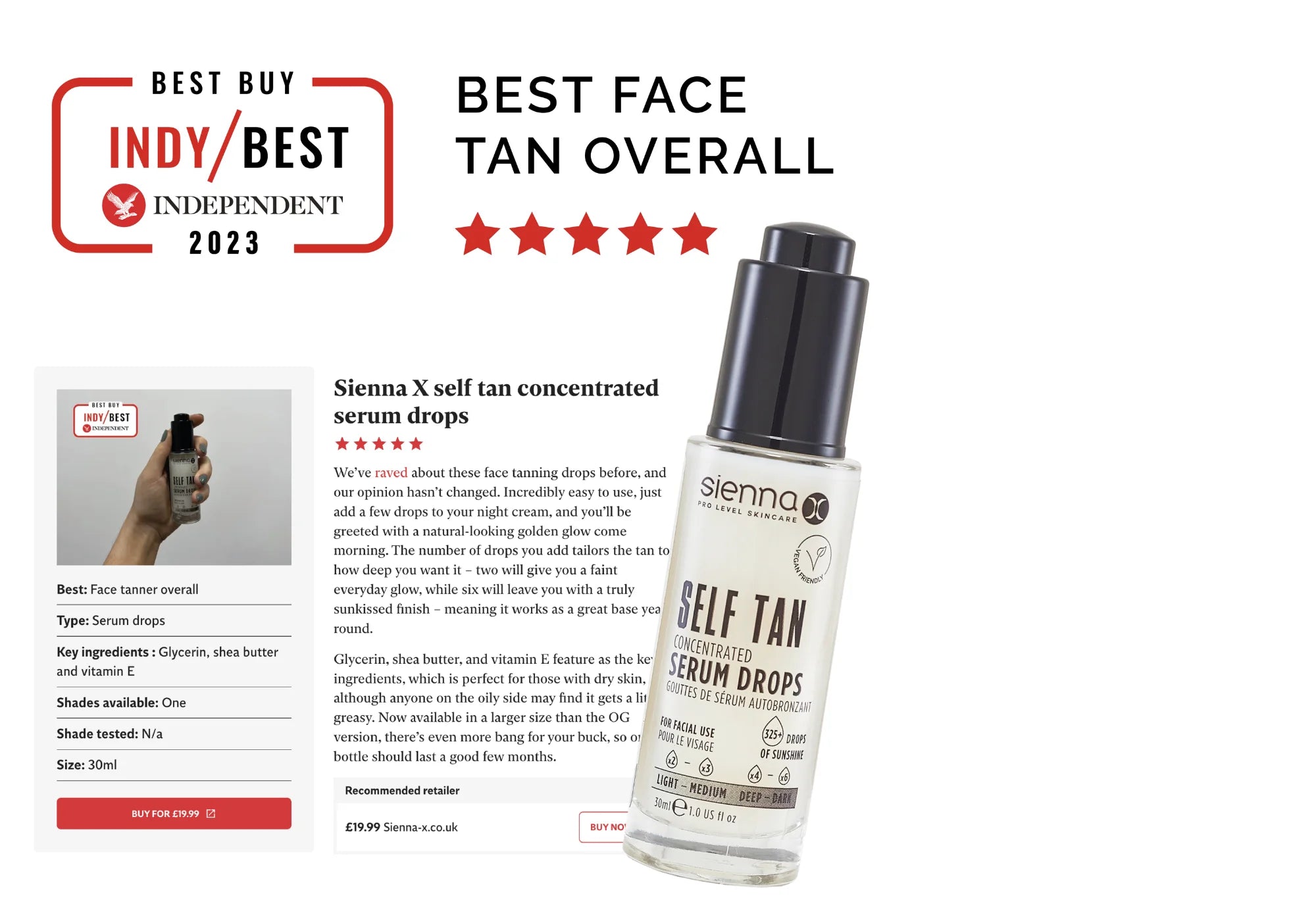 Ensuring our tanning drops comply with the high standards we have for all Sienna X products, all our drops are vegan friendly and cruelty free, whilst also containing 100% natural ingredients.
