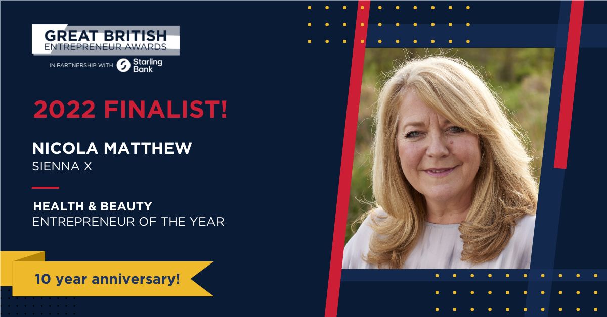 Sienna X founder, Nicky Matthews, was a finalist in the 2022 Great British Entrepreneur Awards, an honor recognising her dedication, innovation, and leadership in the beauty industry. Learn more about her journey from inventing a pop-up spray tan cubicle to transforming Sienna X into one of UKs most trusted beauty brand.
